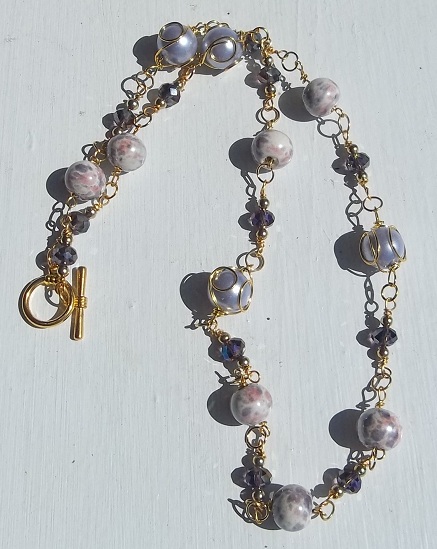This one is brown and I ran out of the brown hemp at the very bottom, so I decided to go with a white hemp for the bottom to give it a unique look. I brought that white up by adding some white flowers and also added some brown sprigs. I really like how this turned out.